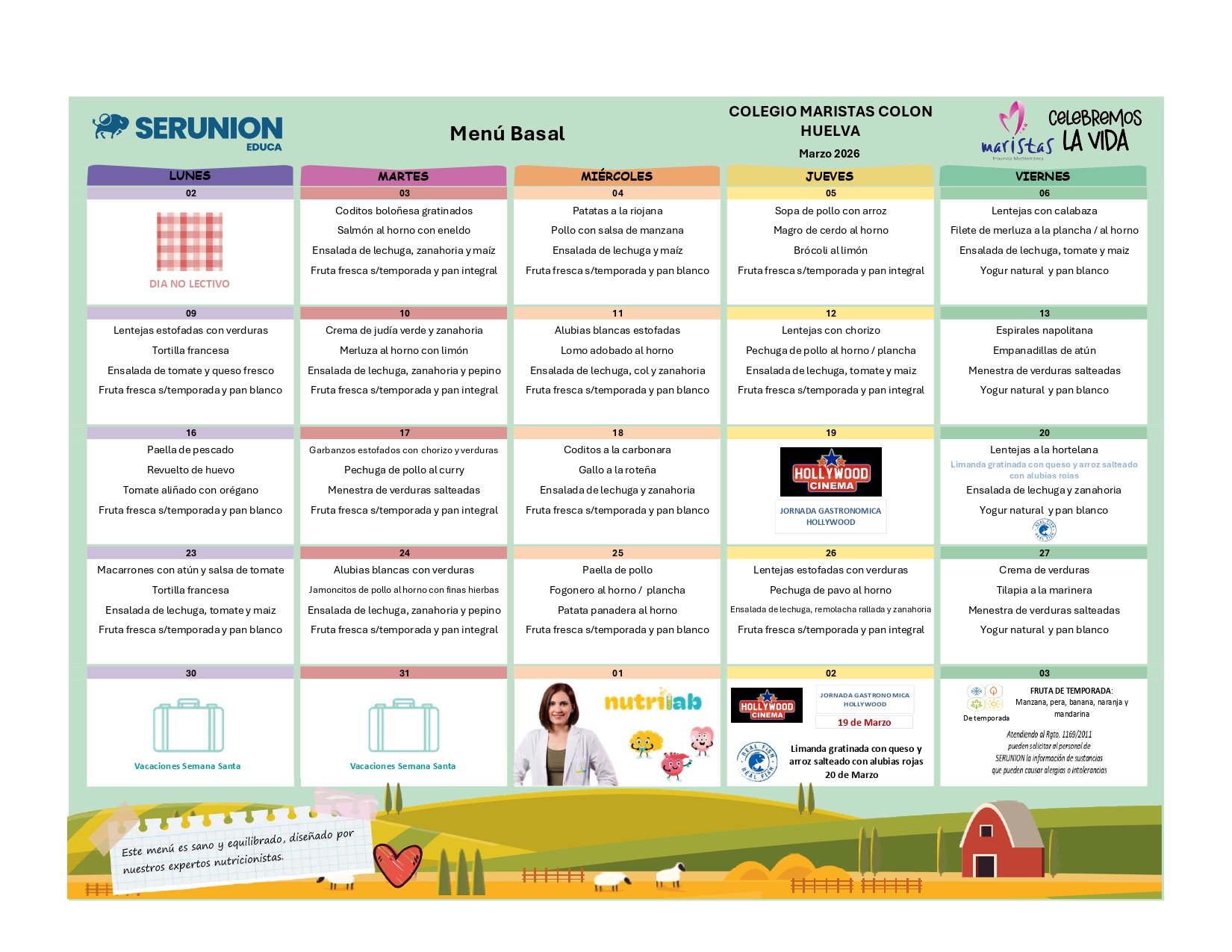 La calidad en la nutrición de nuestro alumnado es muy importante para nosotros, es por ello que elegimos a Serunion como empresa encargada de prestar servicio en el comedor del colegio, realizando un labor nutricional (ver menú mensual aquí)  y educativa a través de sus programas Serunión Educa y del Club Nutrifriends por el planeta,